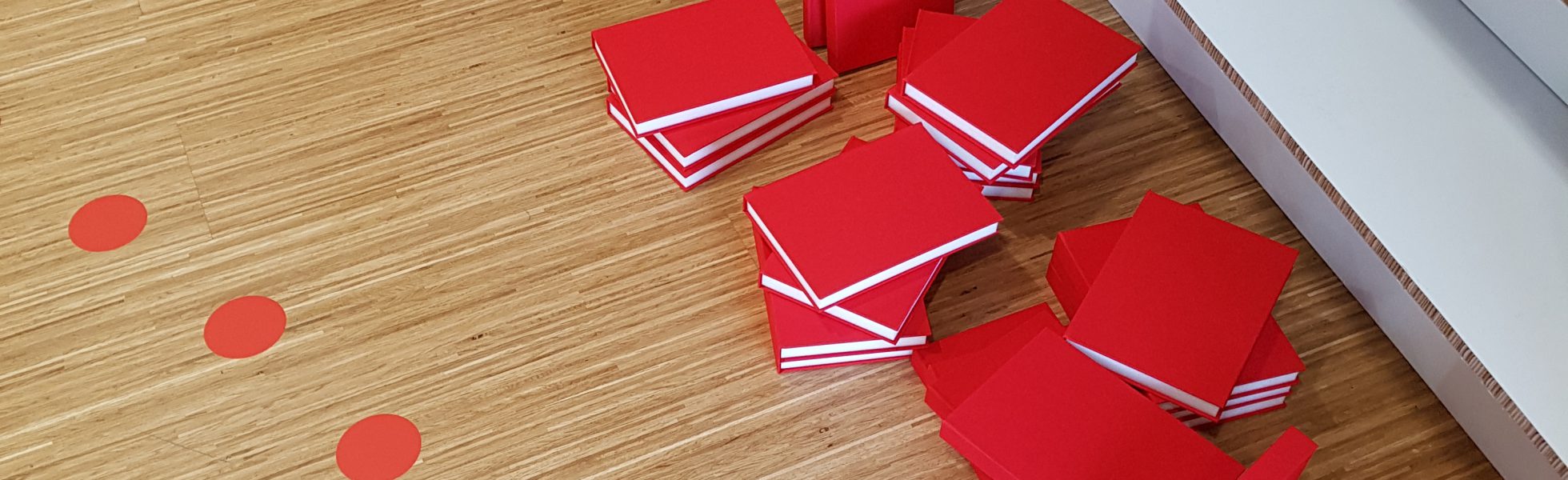 Tijdspad op de vloer door de expositie Voxpop
